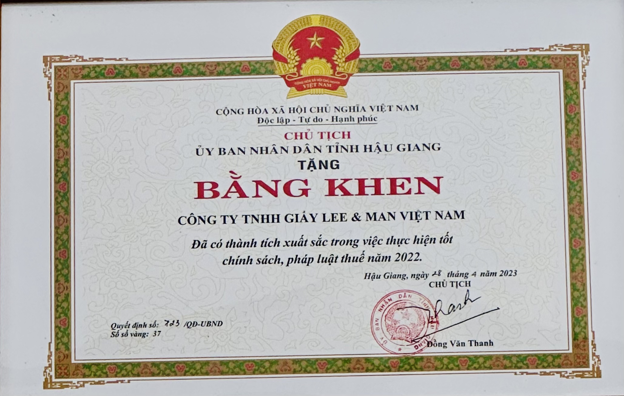 Giải thưởng đổi mới doanh nghiệp Trùng Khánh - Công ty TNHH Giấy Lee & Man Trùng Khánh